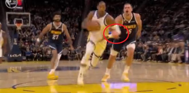 约基奇一度明显拉手,裁判没有吹罚。