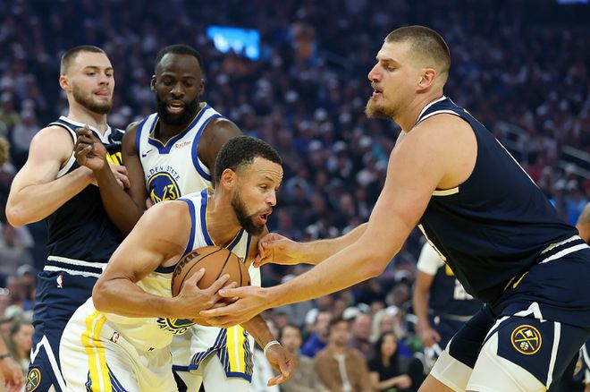 第四节比赛,巴特勒率先罚中两球,小哈达威与追梦对攻一记三分,布朗抛射追平比分。理查德两罚一中,戈登空接暴扣、三分、中投与2+1连得10分,一度打停勇士反超9分。勇士连追5分打停掘金,穆雷内线得分,库明加暴扣,卡约三分回敬,库里上篮追分。约基奇中投维持7分优势,库里连续造犯规5罚全中,约基奇两罚一中,库里三分追到117-117。约基奇达成三双助攻戈登命中第10记三分,库里立即超远三分回敬,约基奇绝杀一攻不中,双方常规时间120-120。