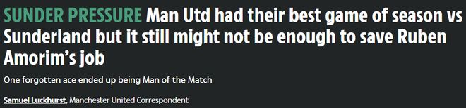 在场面和赛果上,这是曼联本赛季发挥最好的一场球,阿莫林在自己执教曼联的第50场比赛,得到了重要的3分。然而,这不代表阿莫林的帅位已经稳固。英国《太阳报》称,曼联仍可能在未来半个月内选择换帅。这样的可能性似乎不高,吉姆·拉特克里夫爵士没有观看这场比赛,看台上的奥马尔·贝拉达和贾森·威尔考克斯或许不会在赛后给阿莫林致电。