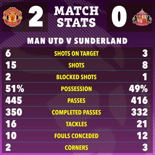 助理教练卡洛斯·费尔南德斯为曼联编排了界外球战术,场边的球童都拿着毛巾。比赛进行到接近半小时的时候,达洛的大力手抛球在桑德兰门前制造了混乱,谢什科把握机会破门,连续第二场比赛得分,曼联2-0桑德兰。