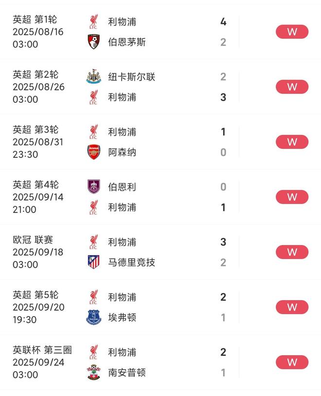 在此前英超第一轮到英联杯的比赛中,利物浦连续六场比赛都是完成绝杀致胜的一方。
