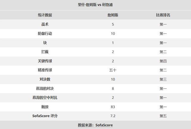——铲球、防守动作、封堵、对抗成功、空中对抗成功、触球次数全部全场第一;
